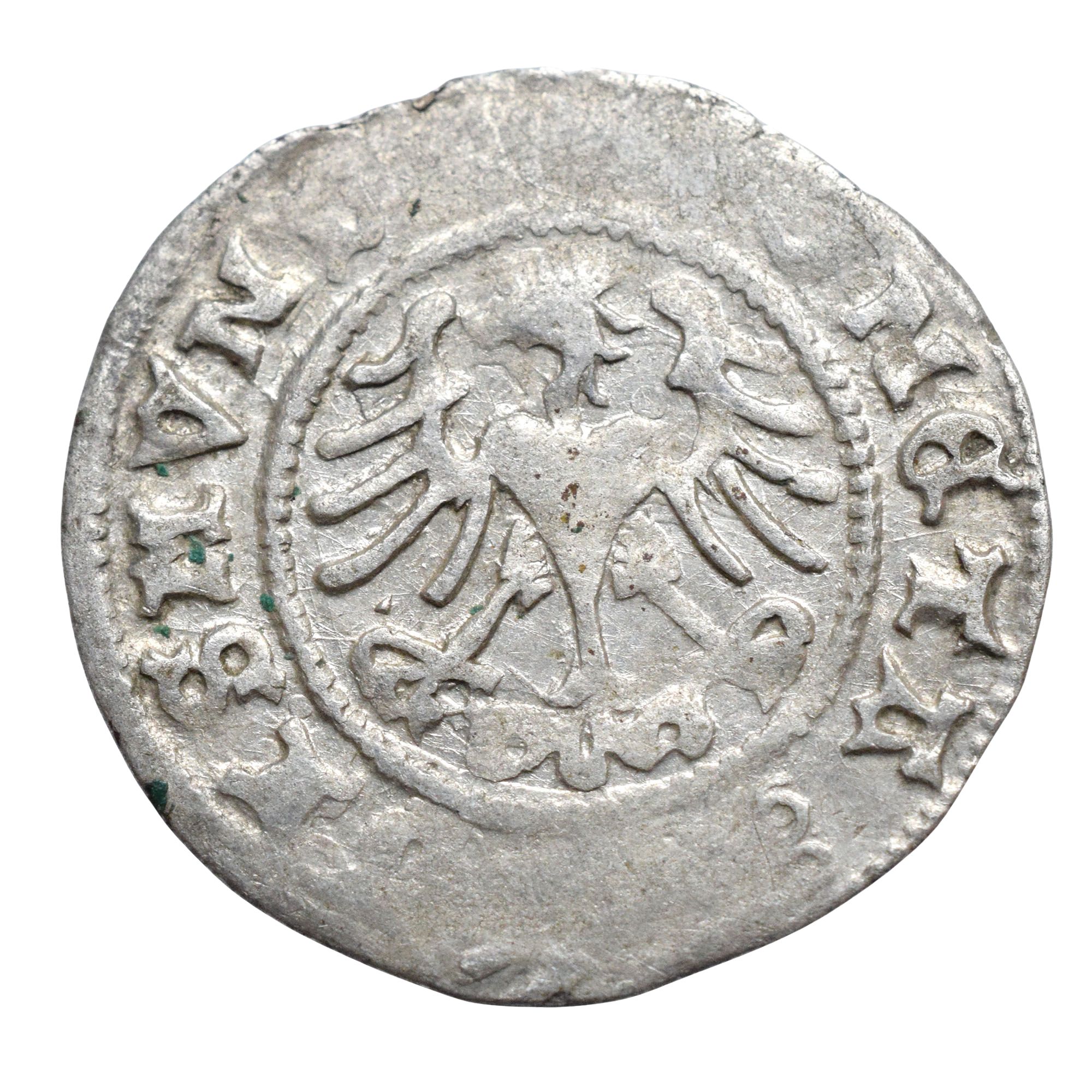 Aw.: Orzeł jagielloński, w otoku napis: [MO]NETA [SIG]ISMVN[DI]