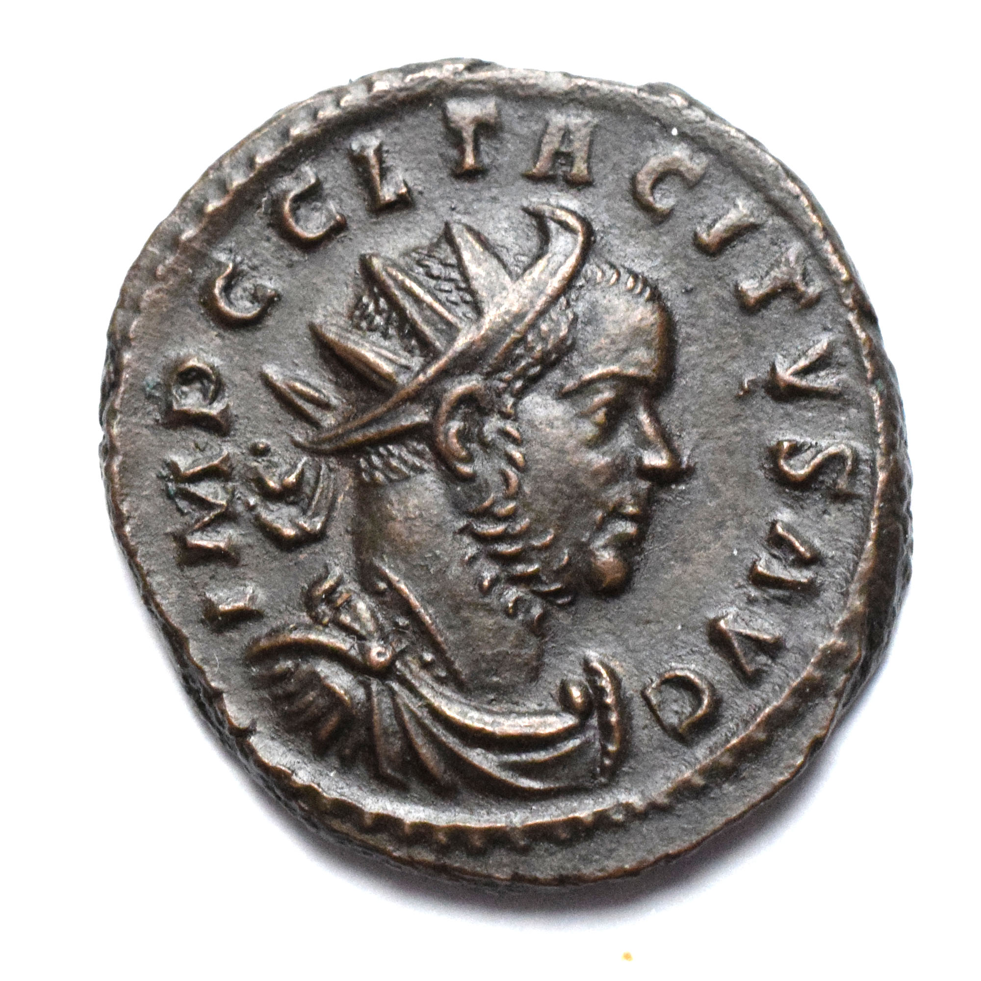 Aw.: popiersie cesarza w koronie radialnej, w otoku: IMP C CL TACITVS AVG