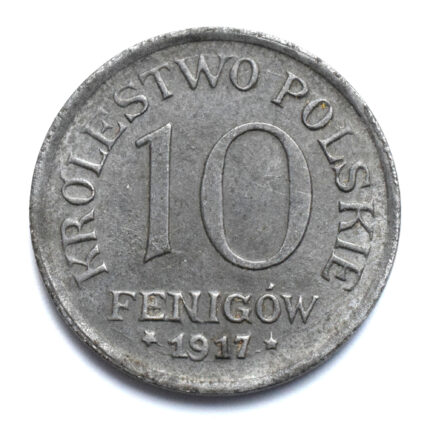 Moneta niemieckich władz okupacyjnych dla Królestwa Polskiego (1917-1918), 10 fenigów, mennica Stuttgart