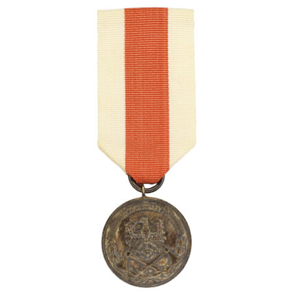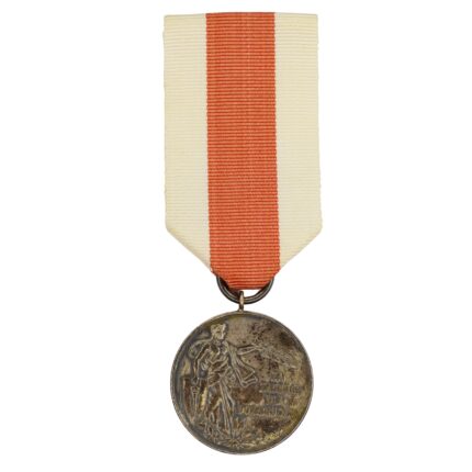 Średnica 40 mm, mosiądz, stan bardzo dobry, oryginalna stara wstążka.
