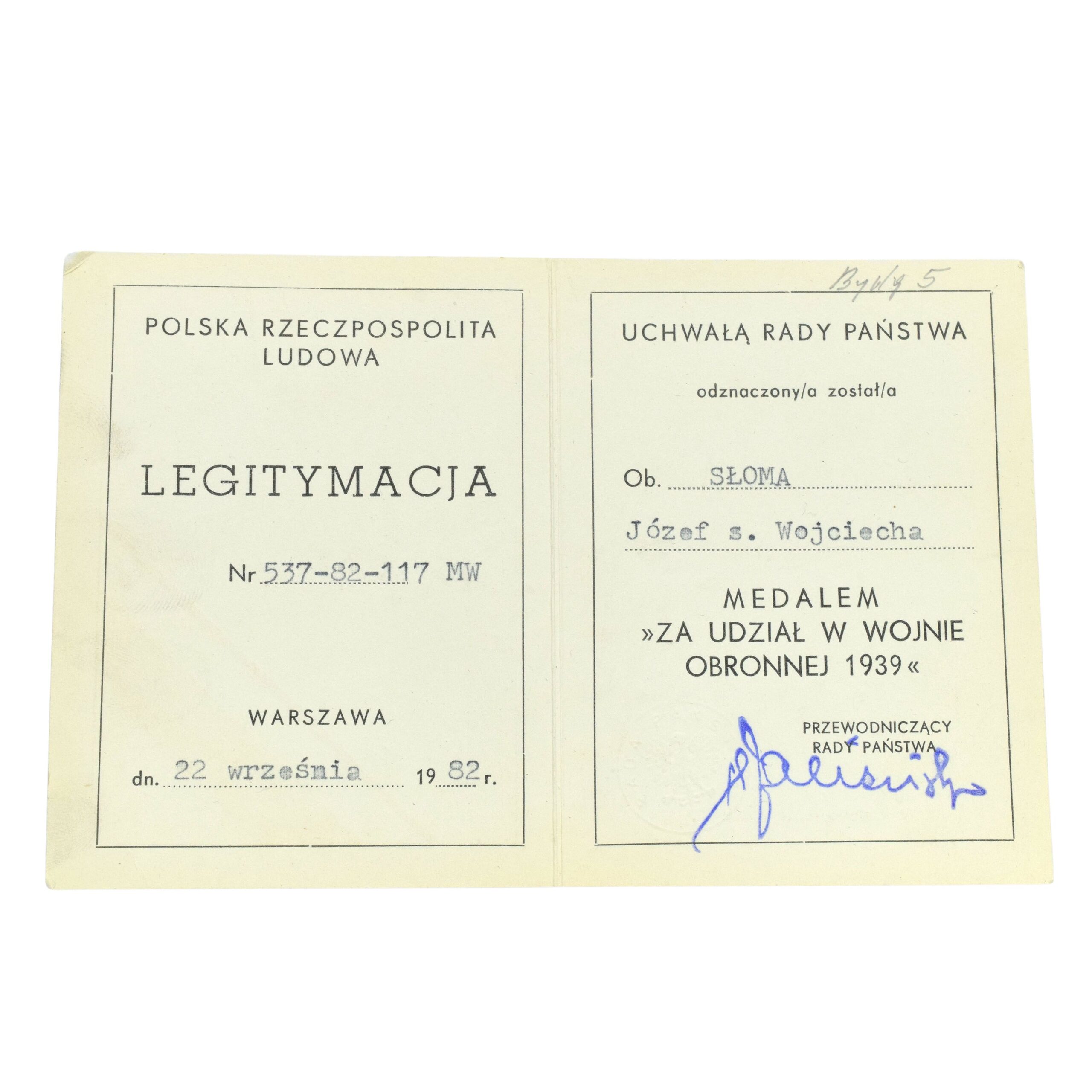 PRL: Medal Za Udział w Wojnie Obronnej 1939 wraz z legitymacją