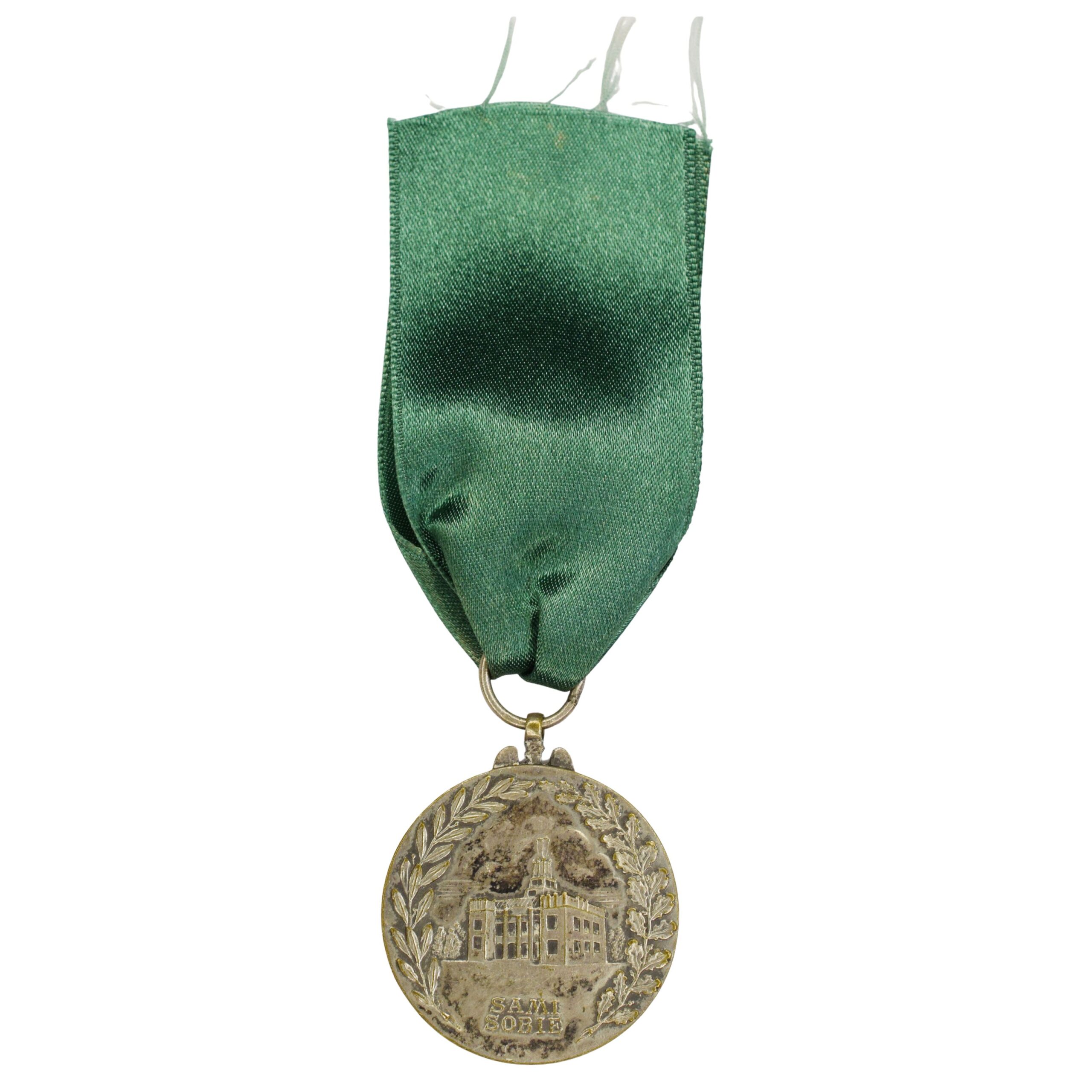 Mosiądz srebrzony, średnica 36 mm, zielona wstążka.