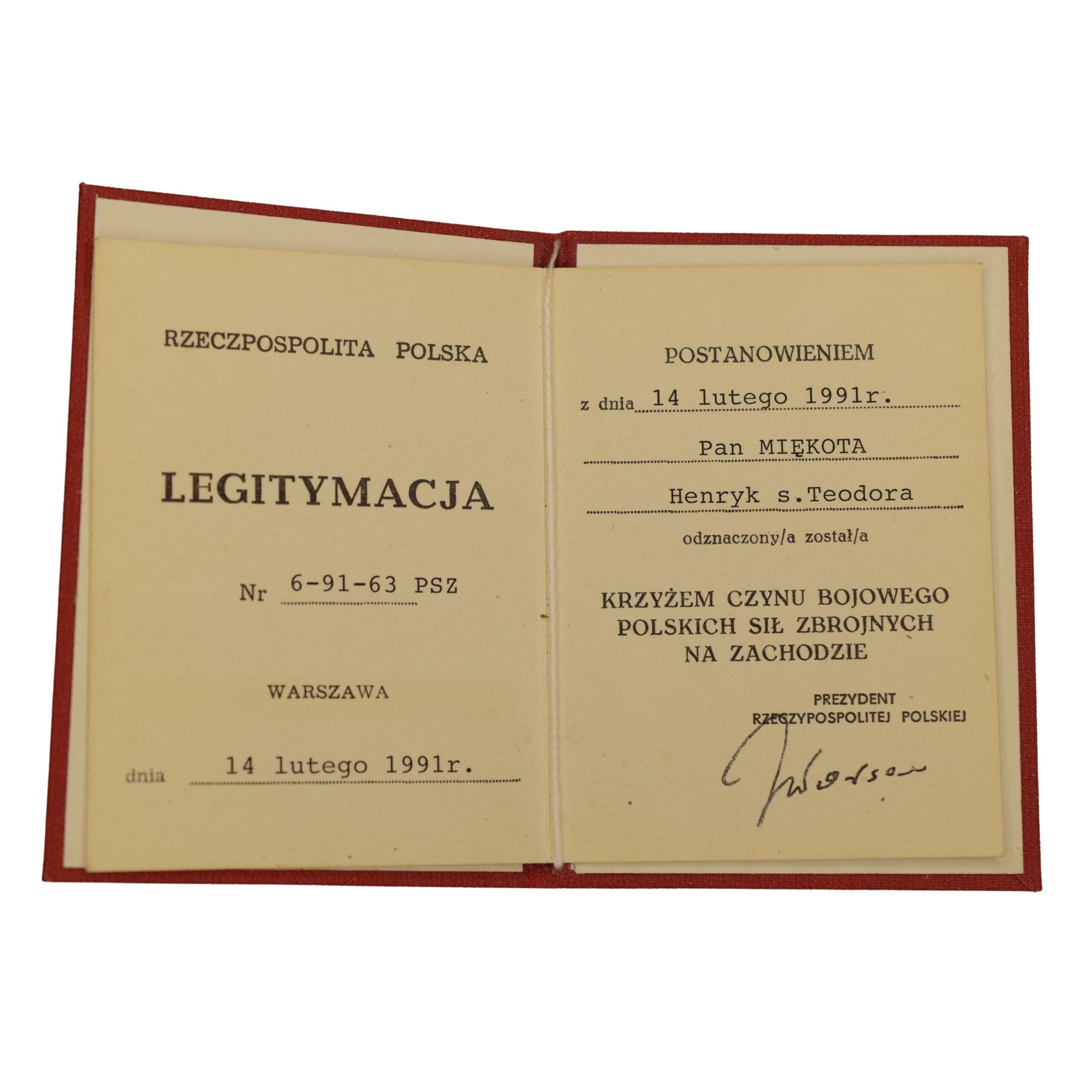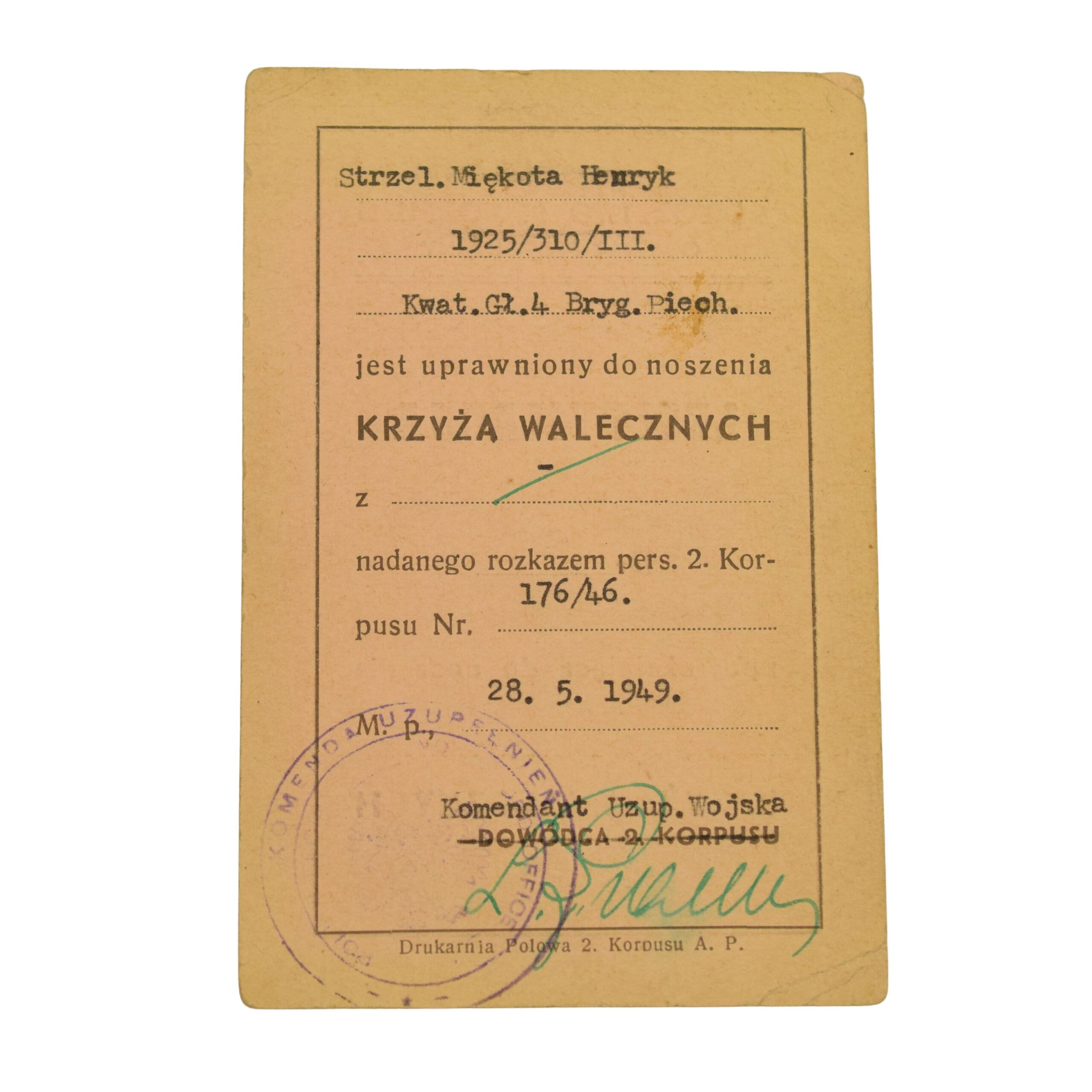 -Krzyż Walecznych PSZ wraz z legitymacją,