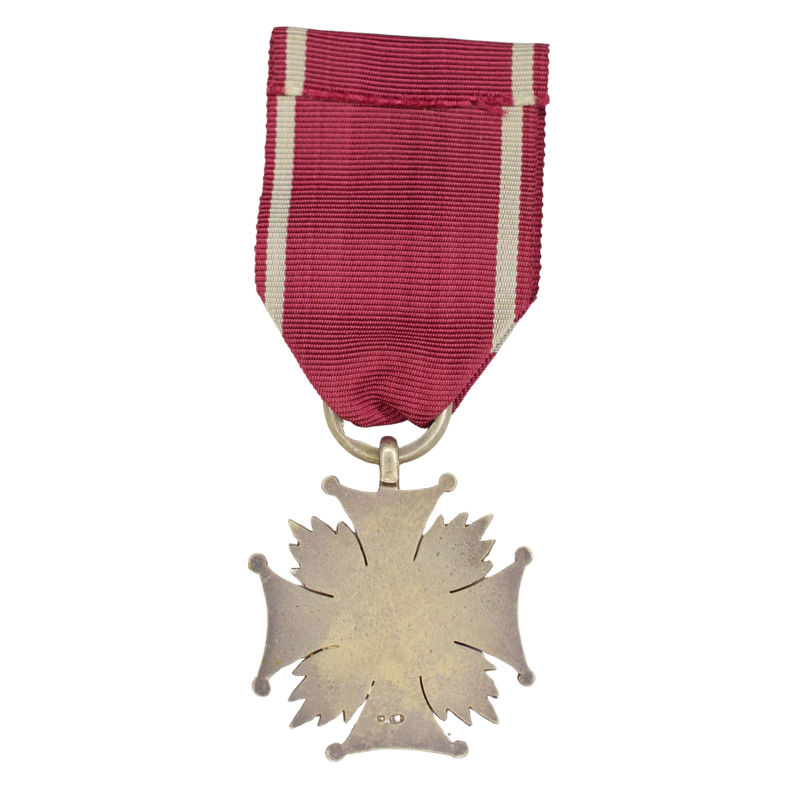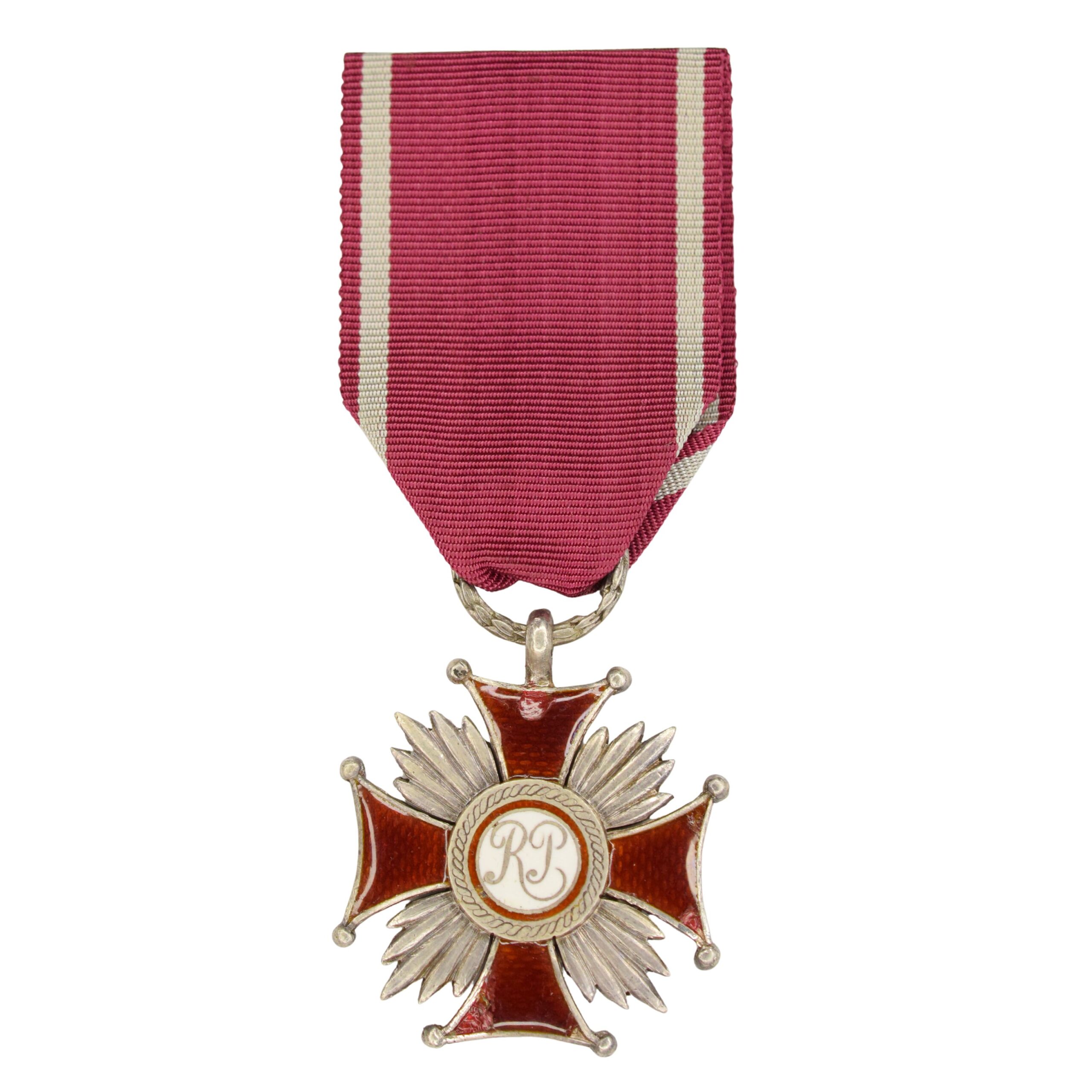 IIRP: Srebrny Krzyż Zasługi produkcji Jana Knedlera wykonany w srebrze. Na rewersie cecha srebra 1 i imiennik wykonawcy IK.