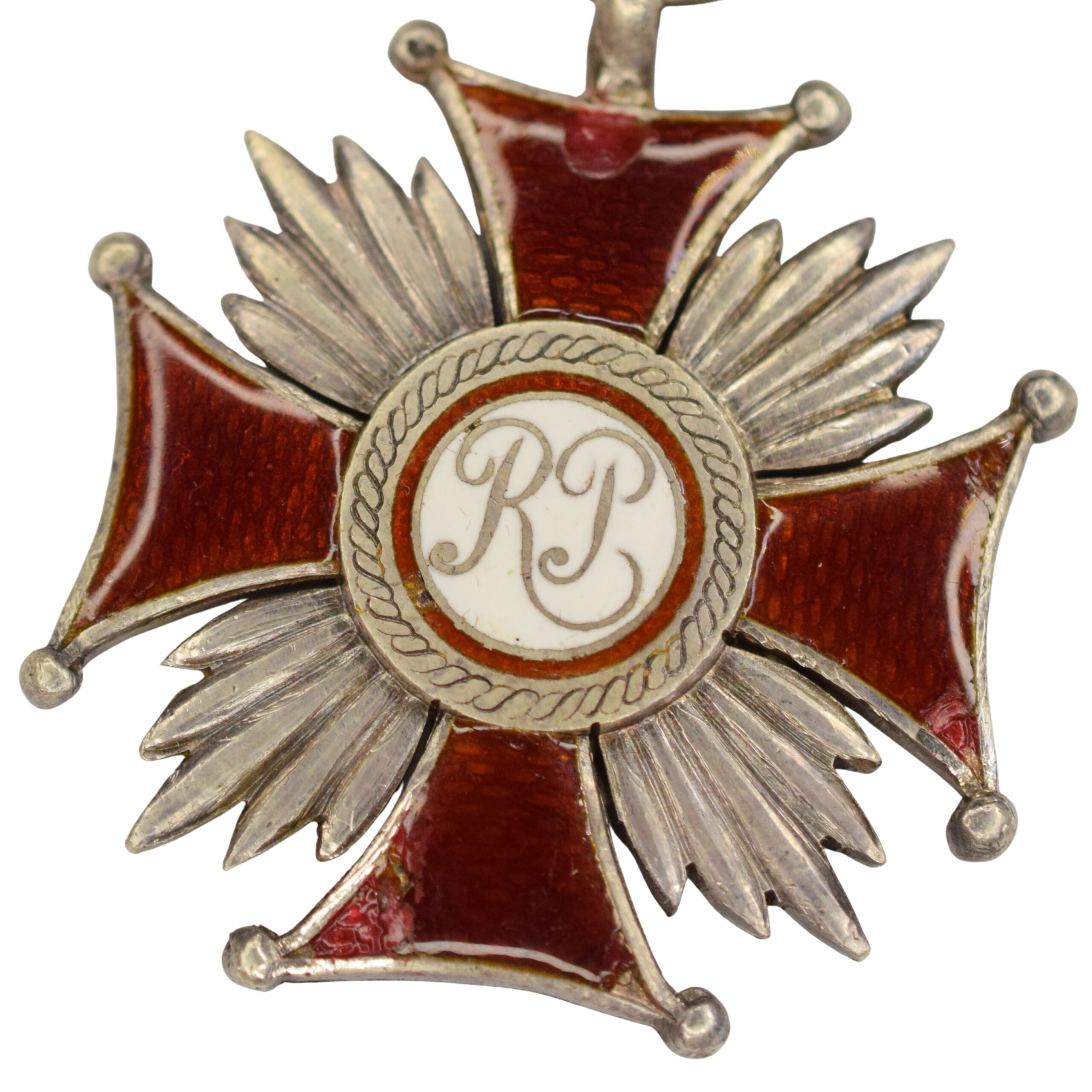 Emalia w kilku miejscach obita. Srebro, emalia, wstążka dołożona o prawidłowych barwach, późniejsza.